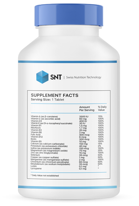 Данный комплекс витаминов и минералов позволяет поддерживать полноценные обменные процессы в организме, обеспечивая отличное состояние костной, нервной и иммунной системы, выработку энергии на клеточном уровне и поддержание хорошего самочувствия. Кроме этого, микронутриенты усиливают защиту и предотвращают развитие дегенеративных заболеваний.