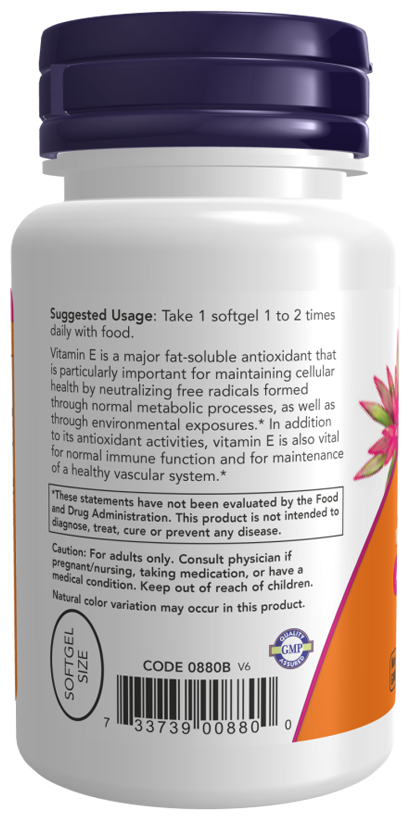 Витамин Е растительного происхождения является основным жирорастворимым антиоксидантом, который особенно важен для поддержания здоровья клеток путем нейтрализации свободных радикалов, образующихся в результате нормальных метаболических процессов, а также воздействия окружающей среды.